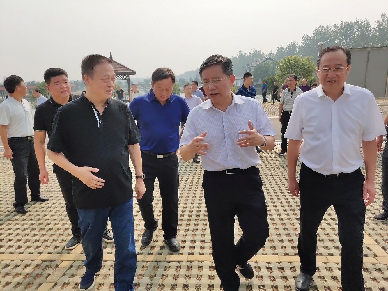 9月14日上午,由市委書記瞿海、市長張值恒 、市人大副主席徐云波、市政協(xié)黃加忠?guī)ш?duì), 赫山區(qū)委書記鄧正安、區(qū)長馬文才等領(lǐng)導(dǎo)陪同視察了由我公司負(fù)責(zé)設(shè)計(jì)施工建設(shè)的益陽市赫山區(qū)智慧農(nóng)業(yè)第一村泉交河鎮(zhèn)菱角岔村(竹泉農(nóng)牧)農(nóng)村生活污水處理環(huán)保項(xiàng)目,我們重點(diǎn)對該村生活污水進(jìn)行收集處理,在項(xiàng)目現(xiàn)場由我公司董事長蔡群文向瞿海書記等市委領(lǐng)導(dǎo)介紹了污水處理的工藝流程,我公司采用的是目前國內(nèi)最先進(jìn)的污水處理技術(shù),(即自主研發(fā)的納米高滲超低壓中空纖維膜污水處理技術(shù),簡稱MTR技術(shù)),使水質(zhì)達(dá)到《城鎮(zhèn)污水處理廠污染物排放標(biāo)準(zhǔn)》(GB18918-2002)一級A標(biāo)準(zhǔn),由我公司龔泰石教授介紹了污水處理工藝原理,獲得了市委瞿書記的高度肯定和大力贊賞,瞿書記指出,該項(xiàng)目大有可為,有很大的發(fā)展前景和空間,值得大力推廣,要發(fā)揮其社會(huì)效益,切實(shí)改善農(nóng)村人居生活環(huán)境。為改善益陽人民生活環(huán)境做出貢獻(xiàn)。