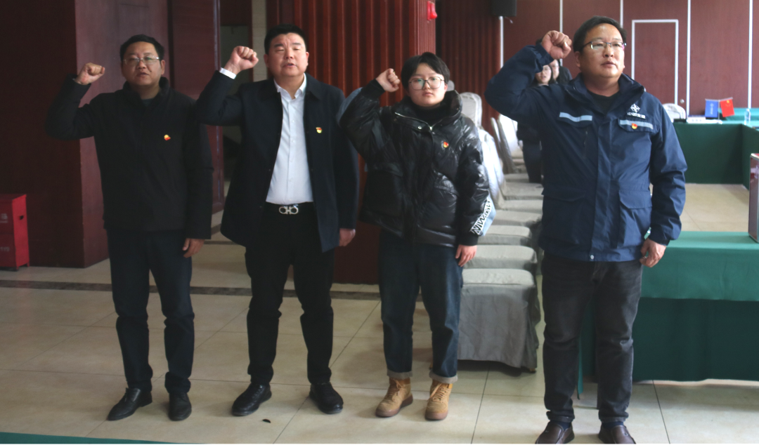 會議最后,舉行了宣誓儀式,由孫西歡領(lǐng)讀宣誓誓詞,一位預(yù)備黨員及三位新進(jìn)黨員進(jìn)行了入黨宣誓。