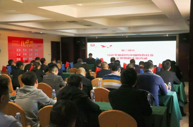 10月30日,公司董事長龐維新以《不忘初心共筑夢、牢記使命勇?lián)?-保持戰(zhàn)略定力,深謀改革創(chuàng)新》為題,講授專題黨課,深刻闡述了開展主題教育的重大意義,從學深悟透習近平新時代中國特色社會主義思想的豐富內涵進行了具體闡釋,深刻解讀了切實開展好主題教育的方法目標,號召全體黨員在習近平新時代中國特色社會主義思想指引下,以“不忘初心、牢記使命”主題教育為契機,堅定落實“強好優(yōu)”戰(zhàn)略,深入開展“雙百行動”,圍繞實現(xiàn)“三個一”奮斗目標,奮力開創(chuàng)一公局集團水利公司更加美好的未來。專題黨課由黨總支部書記張鑫主持,公司總經(jīng)理蔡群文等全體黨員和機關職工70人聆聽了黨課。