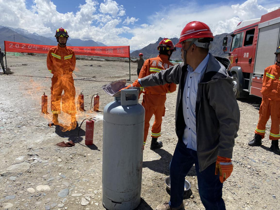 此次演練活動特別邀請了拉薩市堆龍德慶區(qū)消防救援大隊消防員親臨現(xiàn)場培訓(xùn)、指導(dǎo)。包括對滅火器的使用、火情報警、避讓消防救援車輛、選擇正確的滅火方式、避險等多方面的消防應(yīng)急知識,并對火災(zāi)原因分析、搶救方法及最后統(tǒng)計人員傷亡、財產(chǎn)損失等方面做了講解。通過理論與實踐相結(jié)合,項目作業(yè)人員切身體驗了正確的消防滅火技巧,有效提升了他們的安全防范意識與素質(zhì),同時在思想上也讓他們得到了改變,把礙事占地的“紅瓶子”認準成了保命的“護身符”。