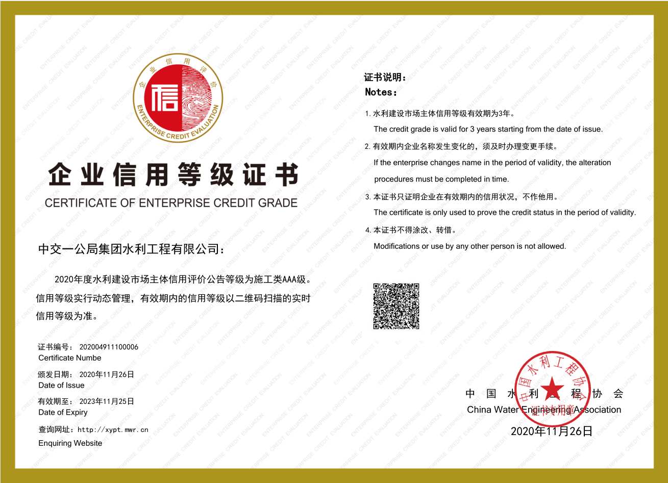企業(yè)信用等級(jí)評(píng)價(jià)是衡量企業(yè)經(jīng)營管理水平、信用程度和履約能力的重要標(biāo)準(zhǔn),是企業(yè)信用特征的集中體現(xiàn),對(duì)企業(yè)未來發(fā)展至關(guān)重要。此次水利公司榮獲AAA級(jí)企業(yè)信用評(píng)級(jí)意味著公司的產(chǎn)品質(zhì)量、管理水平和信譽(yù)程度又一次受到市場(chǎng)認(rèn)可,是對(duì)公司水利工程建設(shè)領(lǐng)域綜合實(shí)力的肯定,該榮譽(yù)能展現(xiàn)公司良好的企業(yè)形象與商業(yè)信譽(yù),并取得良好的社會(huì)效應(yīng)。