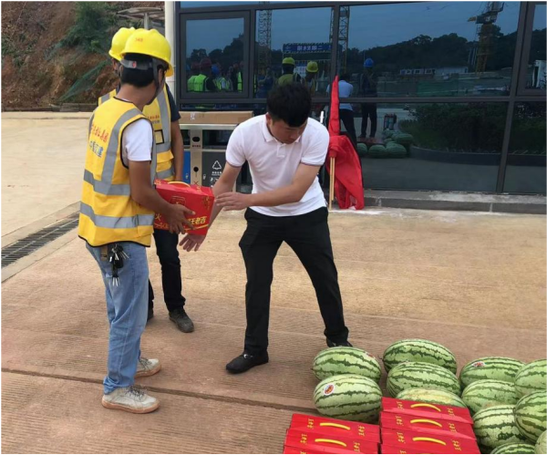 活動中,項目人員為各位職工發(fā)放涼茶、西瓜、解暑藥等防暑物資,同時,項目部還開展了防暑降溫知識普及、教育活動,進一步加強高溫季節(jié)和高溫作業(yè)職工勞動保護工作,為各職工牢固樹立“安全第一、預防為主”安全意識。